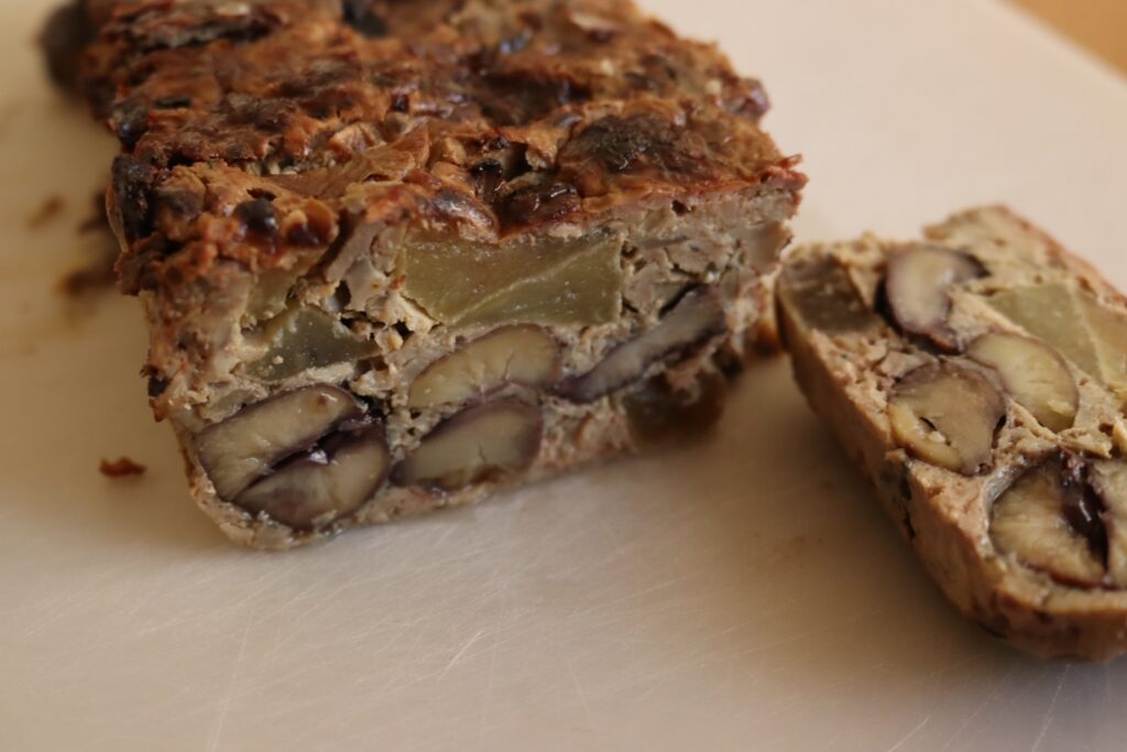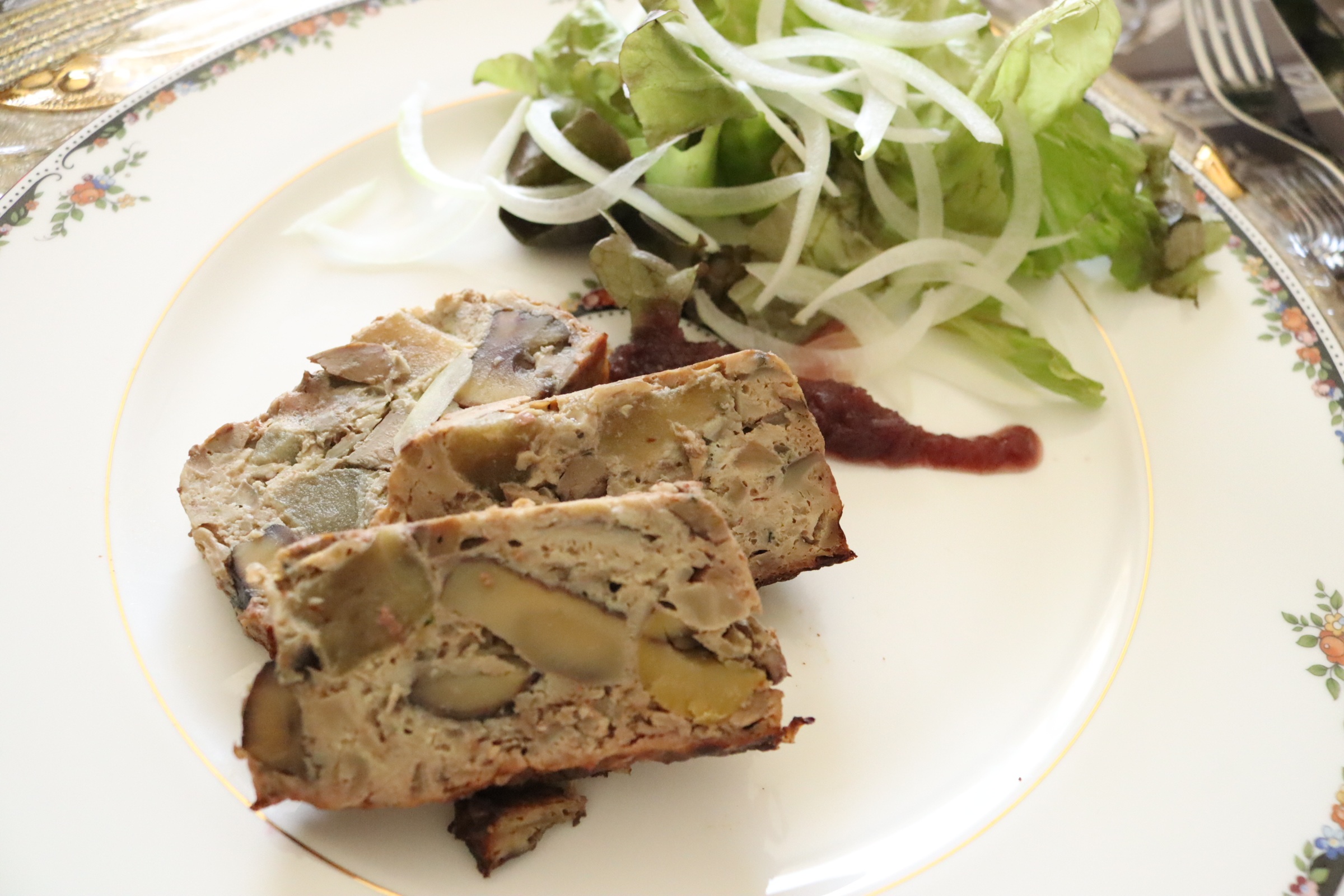 テリーヌは型から出すときに伏せた状態で「トン」と台に打ち付けるようにすると、何せ具がいっぱいなので崩れやすいです。