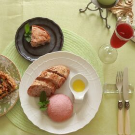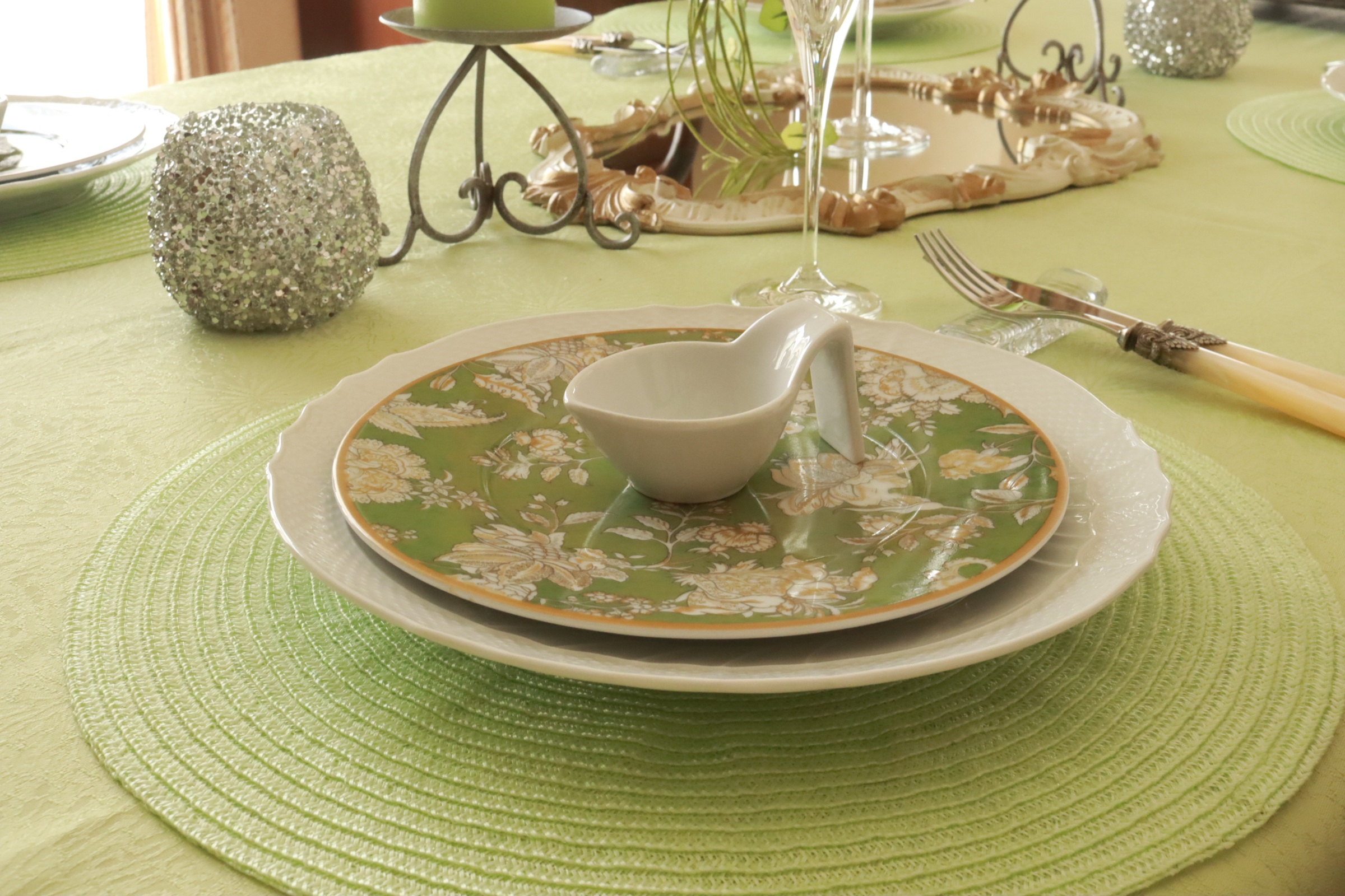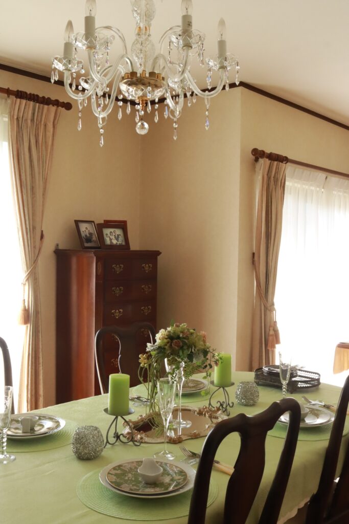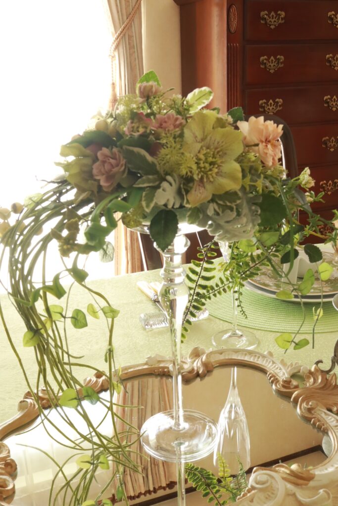 4月のみもざていのテーブルコーデェネイトは新緑をイメージしています。